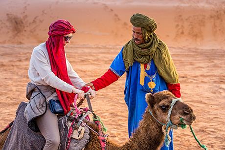 Maroc este o tara minunata, insa cel mai frumos lucru din aceasta excursie a fost ghidul Mohammed, un om exceptional si un ghid cum rar intalnim in zilele de astazi. In Maroc, am parcus 2200 de kilometri si am cunoscut bogata paleta de peisaje in doar zece zile. Am aterizat la Casablanca si intentionam sa vizitam locurile programate, insa vremea nu a fost de partea noastra si am vazut doar jumatate, restul au ramas pentru ultima zi, cand ne intoarceam din nou in acest oras. Sincer, pot sa spun ca vremea, de fapt, ne-a ajutat sa ne bucuram de viata locala pentru ca singurul loc ce se putea vizita in ploaie era supermarketul de langa hotel. In drum spre supermaket, am fost uimiti de agitatia marocana, de nebunia de pe strazi si de adrenalina care ne coplesea atunci cand voiam sa traversam strada. A doua zi, ne asteptau noi destinatii: Rabat, Meknes, Volubilis si Fes. A fost o zi extraordinar de frumoasa si da, am avut timp sa le vizitam pe toate. Prima oprire a fost la Palatul Regal din Rabat, localizat in zona imperiala a orasului, unde nebunia de pe strazi s-a transformat intr-o liniste frumoasa si singurul zgomot era cantecul pasarilor. Asa cum ne-a fost explicat, palatele regale nu pot fi vizitate in interior si este de inteles acest lucru, insa merita sa ajungi in aceste zone pentru ca doar fatada palatului este o adevarata opera de arta. Urmatoarea oprire a fost la Volubilis, situl arheologic roman care ne-a intampinat cu un apus de soare de nedescris si unde am descoperit amprenta romanilor pe aceste meleaguri. Daca ajungeti in Maroc, nu puteti rata Volubilis; chiar si aceste ruine romane va arata diversitatea marocana si va ajuta sa intelegeti mai bine radacinile acestui popor. Ultima oprire din ziua a doua a fost la Fes, unde zona moderna a orasului este mult mai eleganta decat cea din Casablanca si unde medina (orasul vechi) este o adevarata aventura care merita traita din plin. Cuvintele nu pot explica ce veti gasi acolo, dar va recomand sa o vizitati si sa nu ratati faimoasa pielarie. Ca sfat pentru aceasta vizita, va sugerez sa aveti gel de maini cu voi pentru ca mirosul pieilor procesate este foarte puternic si poate fi chiar neplacut. Pe noi ne-a ajutat foarte mult gelul de maini, mai mult decat menta oferita la intrare. De la Fes, am plecat spre Erfoud, zona desertica a Marocului, traversand Atlasul Mijlociu. A fost o zi superba care ne-a incantat cu diversitea peisajului. De la zona fertila cu un verde ca in povesti, am ajuns la zona desertica, unde culoarea predominanta era portocaliul nisipos. Programul nostru era gandit sa petrecem revelionul in aceasta zona si a fost o alegere reusita. In aceasta zi, am avut o aventura care ne-a uns pe suflet. Excursia in desert cu camile ne-a permis sa vedem apusul si pot sa spun ca a fost cel mai frumos moment din programul nostru. Am ajuns in Sahara cu tot ce ne trebuia: cu turbane in stil marocan si cu dorinta de a fi surprinsi de farmecul zonei. Dar ceea ce nu ne asteptam era sa avem o luna plina, insa acest lucru a facut ca aceasta experienta sa fie una memorabila. Eu nu imi amintesc sa fi vazut o luna mai stralucitoare decat cea din desert. Chiar daca era seara si trebuia sa fie intuneric, dunele de nisip straluceau in lumina ei si ne parea rau ca trebuia sa plecam. De revelion, am fost cazati la hotelul Cergui din Erfoud, un hotel extraordinar de frumos care seamana cu un castel de nisip. Daca sunteti genul de persoane carora va plac hotelurile rustice, acesta este cea mai buna optiune pentru a petrece o noapte in desertul din Sahara. Sincer, eu credeam ca revelionul va fi unul plictisitor, avand in vedere ca, in Maroc, nu se sarbatoreste la fel ca in Europa sau ca in Cuba, dar m-am inselat. Hotelul avea o megapetrecere pregatita pentru turistii europeni si chiar au reusit sa ne faca sa ne simtim ca acasa. Am avut o trupa live care a cantat pana tarziu, am avut focuri de artificii, sampanie si chiar o hora romaneasca. Noi am facut hora si imediat s-au alaturat cativa marocani incantati de muzica noastra. In concluzie, a fost un revelion reusit. De la Erfoud, am plecat spre Tinghir, in drumul nostru descoperind lumea covoarelor marocane si ritualul ceaiului de menta, doua elemente reprezentative pentru Maroc. Daca imi placea ceaiul inainte, acum pot sa spun ca imi place si mai mult. Dupa prezentarea ritualului, am devenit o adepta a ceaiului de menta si, nu glumesc, chiar acum scriu aceste linii avand ceainicul cumparat de acolo langa mine si beau un ceai de menta foarte aromat. De la Tinghir, am plecat spre Marrakech. In drumul nostru, am vizitat Studiourile Atlas si Ait-ben-Hadou. Am fost mult mai impresionata de Ait-ben-Hadou pentru ca frumusetea acestei zone este naturala si impunatoare. Studiourile Atlas nu au fost foarte bine intretinute si, chiar daca sunt renumite, nu m-au impresionat la fel ca Ait-ben-Hadou, locul in care s-a filmat Gladiatorul. Marrakech va ramane pentru mult timp in inima mea, si nu pentru piata sa faimoasa Jema Efna, ci pentru Gradinile Majorelle. In Gradinile Majorelle, este usor sa uiti de toate problemele si sa te bucuri de frumusetea naturii. Verdele combinat cu cladirile si fantanile albastre fac din acest loc un adevarat refugiu pentru imaginatia noastra. Nu ma mir ca Yves Saint Laurent s-a indragostit de ele. Sincer, a fost greu sa plec din acest loc. Chiar daca am stat 45 de minute aici, pentru mine nu a fost suficient. Cred ca puteam sa raman o saptamana intreaga. Dintre toate orasele vizitate, preferatul meu va ramane Marrakech, un oras modern cu o piata colorata si agitata care te face sa folosesti tehnici de negociere pe care nu stiai ca le ai. Am ajuns inapoi acasa si, desi nu au trecut inca 72 de ore, deja imi este dor de Maroc. Ii multumesc lui Mohammed pentru oportunitatea de a descoperi Marocul prin ochii si experianta lui. Ii multumesc domnului Lazarescu pentru minunatele fotografii ce insotesc acest testimonial! Dear Morocco, I miss you already…