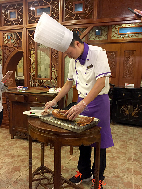 Pentru a ne lua ramas bun asa cum se cuvine, la ultima cina am savurat unul dintre cele mai faimoase preparate chinezesti, Rata Peking, intr-un restaurant elegant. Am parasit China cu un gust placut si cu amintiri pentru o viata intreaga!