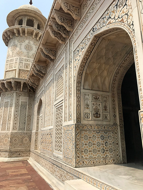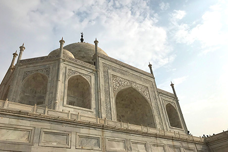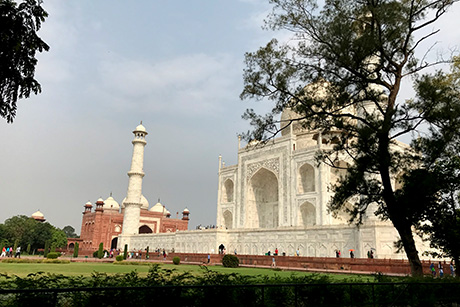 Dupa cinci ore de mers cu autocarul, am ajuns in Agra, un oras mic, comparativ cu marile orase ale Indiei. Agra este renumit pentru principala atractie a Indiei: Taj Mahal-ul. Majoritatea turistilor care ajung in India vin pentru a vedea cea mai frumoasa constructie din lume, simbol al iubirii eterne. India inseamna insa mult mai mult decat Taj, Taj Mahal-ul nu face decat sa completeze tabloul experientei hinduse intr-un mod sublim. Cum s-ar spune, este cireasa de pe tort. Este exact cum il stiam din documentare: stralucitor, elegant, dominand mandru Raul Yamuna. Am avut strania senzatie ca Taj-ul are personalitate proprie si ca este constient de maretia si faima sa, vrajindu-ma cu frumusetea nemasurata. Neclintit si totusi plin de viata, alb si totusi cu nuante ireale de crem, gri si roz, acest monument este definitia perfectiunii. Arhitectura si simetria ireprosabila a Taj Mahal-ului, demonstreaza ambitia nebuneasca a lui Shah Jahan.
