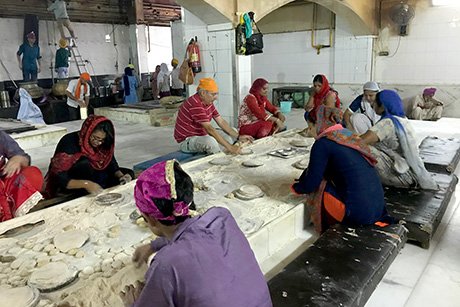 In contrast cu grandoarea constructiilor islamice, am descoperit Bangla Sahib Gurudwara, lacas de cult sikh, unde zeci de mii de oameni diferiti sunt hraniti zilnic de catre voluntari. Tabloul m-a atins profund: ma uitam printr-un geam enorm la siruri, siruri de nevoiasi care isi asteptau randul la mancare, facand loc mai apoi celui din spate sa isi ia portia. Mahi, ghidul nostru, ne-a spus ca in jur de 10.000 de oameni sunt primiti aici indiferent de varsta, statut social, religie sau etnie, in fiecare zi, de dimineata pana seara. Bucataria a completat scena la care asistam uluita: cazane uriase clocotind, cratiti si tigai fumegand, femei care invarteau aluat, barbati care amestecau in cazane, sunete asurzitoare de vesela, o forfota continua care reda exact ce inseamna India: viata.