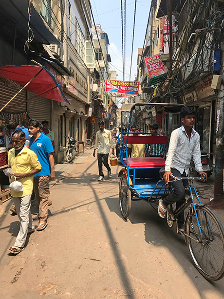 Delhi, capitala locuita de o populatie mai mare decat cea a Romaniei, m-a intampinat cu un ritm atat de ametitor, incat ma intrebam daca este adevarat ceea ce se mi se desfasoara in fata ochilor sau daca imaginatia imi joaca feste. Delhi este haosul prin excelenta: strazi impanzite de masini, autobuze, autocare, ricse, vaci, scutere, pietoni, toate croindu-si loc unele pe langa altele, cu o dibacie iesita din comun. Claxoanele se aud incontinuu, insa niciun indian nu se arata deranjat de ele, ci isi vede de drum cu un calm desavarsit. N-am avut cum sa nu ma gandesc ca la noi un claxon in trafic da tonul la alte zeci de claxoane, injuraturi, semne obscene si scartait nervos de roti. M-am gandit atunci: cum reusesc? Cum e posibil atata calm in asemenea debandada? Radeam in sinea mea, imaginandu-mi cativa soferi romani nemultumiti de traficul de la noi, teleportati in traficul din Delhi. Asta da lectie de rabdare!