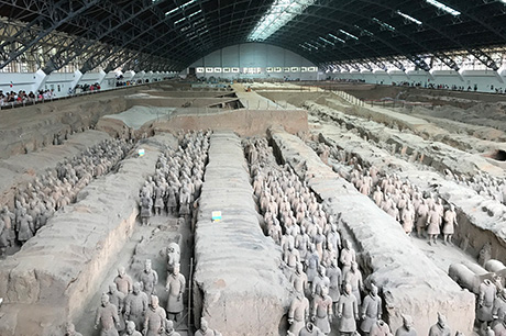 Armata de Teracota, descoperita accidental in 1974 de catre un fermier care sapa o fantana, este inca o dovada a grandorii ce caracterizeaza China. Tabloul celor 8000 de soldati in marime naturala este impresionant si totodata macabru. Aceste statui au trasaturi fizice extrem de reale... atat de reale incat am avut impresia ca se vor misca din clipa in clipa, insa ei stau nemiscati, incremeniti in timp, fixand cu privirea fiecare trecator. Este imposibil sa nu fii un pic inspaimantat la vederea acestor gardieni ai Imparatului Qin Shi Huang, imparat care a ramas in istoria Chinei ca cel mai crud conducator. Plimbandu-ma prin acel perimetru, inconjurata fiind de miile de soldati nemiscati, mi-am dat seama inca o data ca ambitia dusa la extrem sta la baza acestui popor.